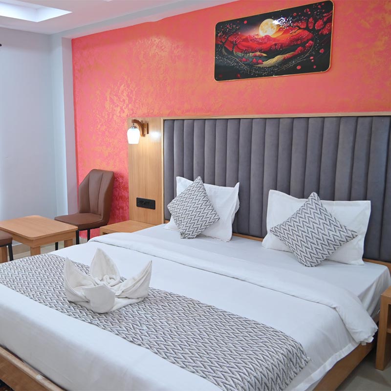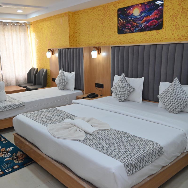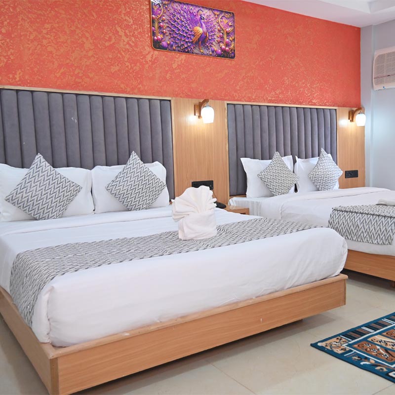 Discover our comfortable rooms designed for a pleasant stay near the beach (150 m) and temple (3.5 km). Choose from deluxe to family suites — perfect for your vacation at Hotel Mahavir Sheraton, Puri.